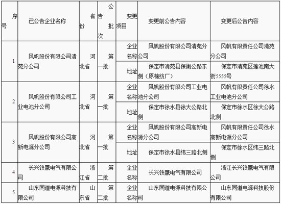 符合《鉛蓄電池行業(yè)規(guī)范條件(2015年本)》企業(yè)信息變更名單