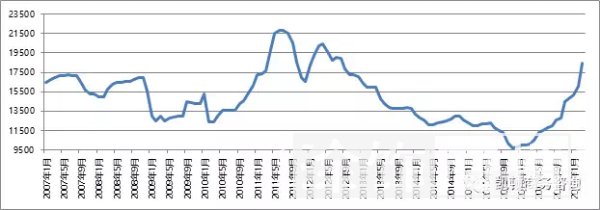 去年6月份,當(dāng)市場價由年初的9300元/噸漲到11000元/噸附近的時候,有塑料企業(yè)的采購人員問我,市場還會繼續(xù)漲嗎?我告訴他:”噩夢才開始,肯定還會漲”。去年10月我在美國,有朋友詢從中國進口鈦白粉的價格,當(dāng)時報價是12000多元/噸,朋友還嫌貴,我告訴這位兄弟,有多少錢就花多少錢買,肯定還會漲。并且在17000元/噸之前,沒人可以阻擋;去年11月底涂料展期間,價格已經(jīng)飆到14300-14500元/噸。展會期間很多人問我如何看鈦白粉價格,我堅決告訴他們 “沒漲透,至少在17000元/噸前,市場行情是單邊向上的”。