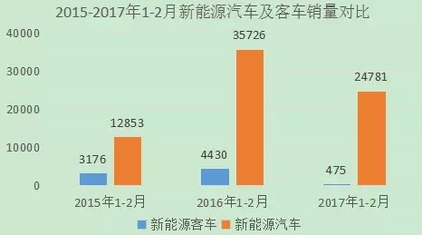 2017年1-2月,中國新能源汽車產(chǎn)銷量明顯低于上年同期。據(jù)中國汽車工業(yè)協(xié)會統(tǒng)計,2017年前兩月新能源汽車產(chǎn)銷量分別為25213輛和24781輛,同比下降33.5%和30.5%。其中,客車市場更是一片慘淡,工信部合格證產(chǎn)量數(shù)據(jù)顯示,2017年1-2月,新能源客車總銷量僅為475輛(數(shù)據(jù)統(tǒng)計為5米以上客車,不包括未報備企業(yè)數(shù)量)。與2015年和2016年同期分別為3176輛和4430輛相比,可謂斷崖式下跌。下跌的終端市場將直接影響到動力電池企業(yè)的生產(chǎn)規(guī)劃及排期,甚至有可能造成動力電池廠生產(chǎn)的停滯。而這在鐵鋰動力電池企業(yè)中,將表現(xiàn)的更為突出。