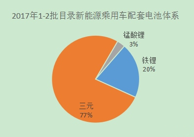 在經(jīng)歷了2016年底三元客車解禁風波之后,開始不斷有三元動力鋰電池企業(yè)進入到新能源客車的供應(yīng)體系中,擠壓了鐵鋰動力電池企業(yè)的生存空間。2017年1-2月公布的新能源客車供應(yīng)目錄中,磷酸鐵鋰電池,占比達53%,錳酸鋰電池占比46%,三元電池占比為1%。(錳酸鋰主要為混合動力車型,電量比重更低。)其中,在第二批目錄中,出現(xiàn)了由三元電池供應(yīng)的純電動客車車型,共有三款。隨著后期目錄的公布,三元純電動客車的數(shù)量將越來越多。