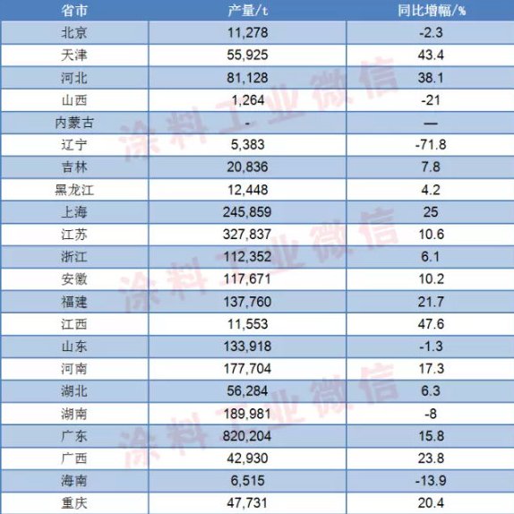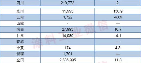 2017年1-2月我國(guó)各省市涂料產(chǎn)量統(tǒng)計(jì)