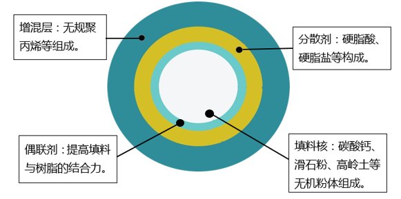 ②母粒全名為塑料母粒,是在塑料加工成形過(guò)程中,為了操作上的方便,將所需填料、各種助劑與少量載體樹(shù)脂進(jìn)行混合混煉,經(jīng)過(guò)一系列加工制得。理想狀態(tài)下由四部分構(gòu)成。如圖: