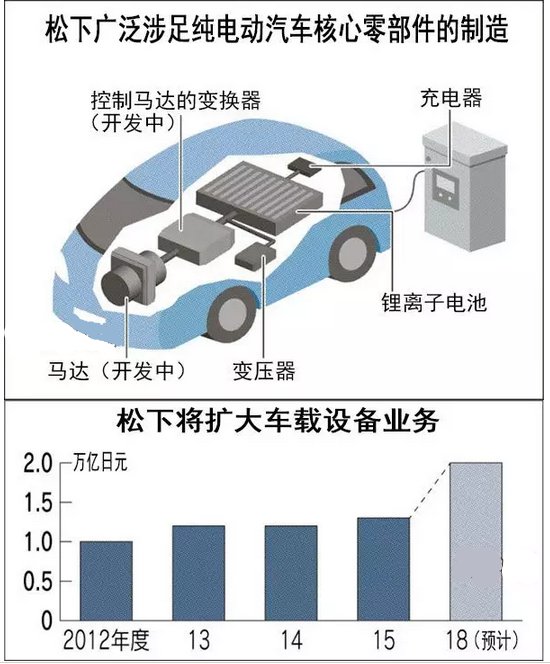松下在汽車用電池、充電器、變壓器領(lǐng)域占有較高份額,并在推進馬達和控制設(shè)備的研究,希望將系統(tǒng)推廣向整車廠商,以促進純電動汽車行駛相關(guān)零部件的銷售。