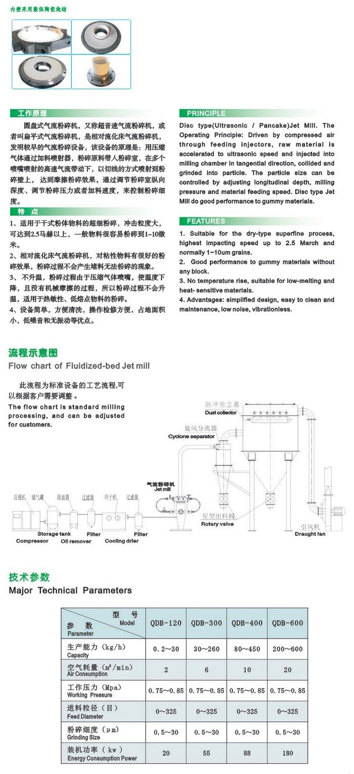 3、圓盤式氣流粉碎機(超音速/扁平式)