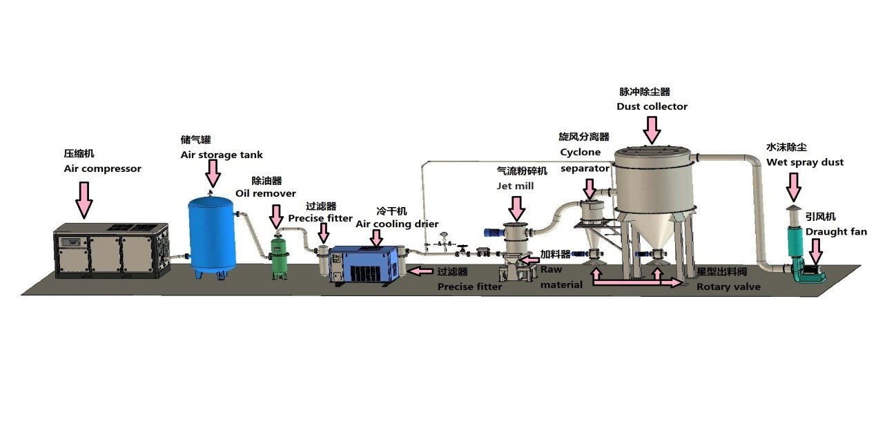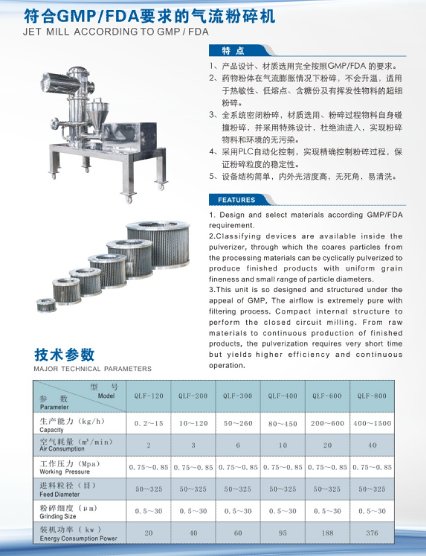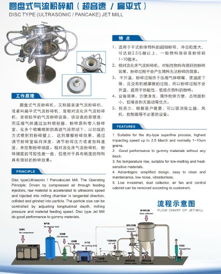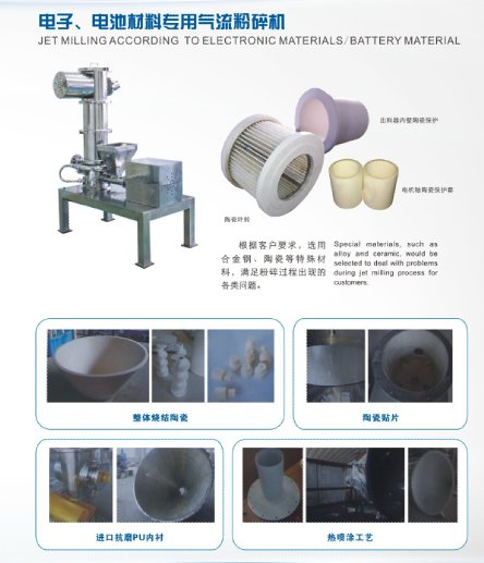 應用于化工、醫(yī)藥、農(nóng)藥、食品、電子材料、電池材料以及高分子新材料等干式粉體原材料的超細粉碎。