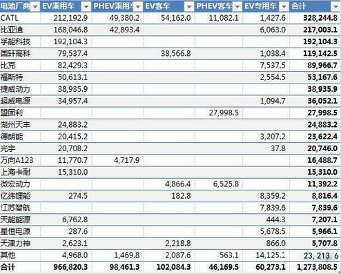 2017年第一季度新能源汽車市場(chǎng)電池供應(yīng)量