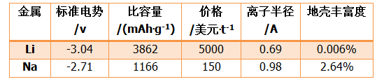 相比鋰資源而言,鈉儲量十分豐富,約占地殼儲量的 2.64%,且分布廣泛、提煉簡單。同時,鈉和鋰在元素周期表的同一主族,具有相似的物理化學(xué)性質(zhì),其基本的性質(zhì)對比見表 1。