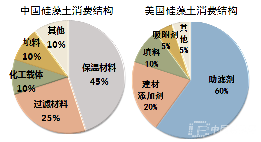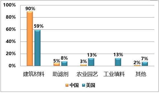 中美兩國珍珠巖在不同領(lǐng)域的消費比例