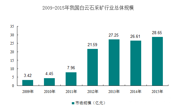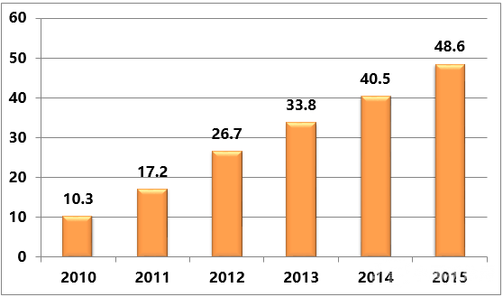 2010-2015年我國膨脹珍珠巖行業(yè)市場規(guī)模(億元)