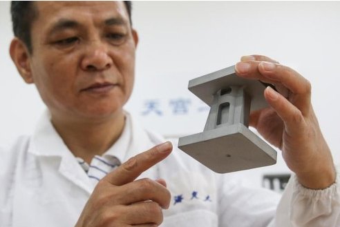 2017年8月10日,上海交大材料科學(xué)與工程學(xué)院王浩偉教授在介紹由超強納米陶瓷鋁合金材料制成的用于航天通信領(lǐng)域的關(guān)鍵零部件。