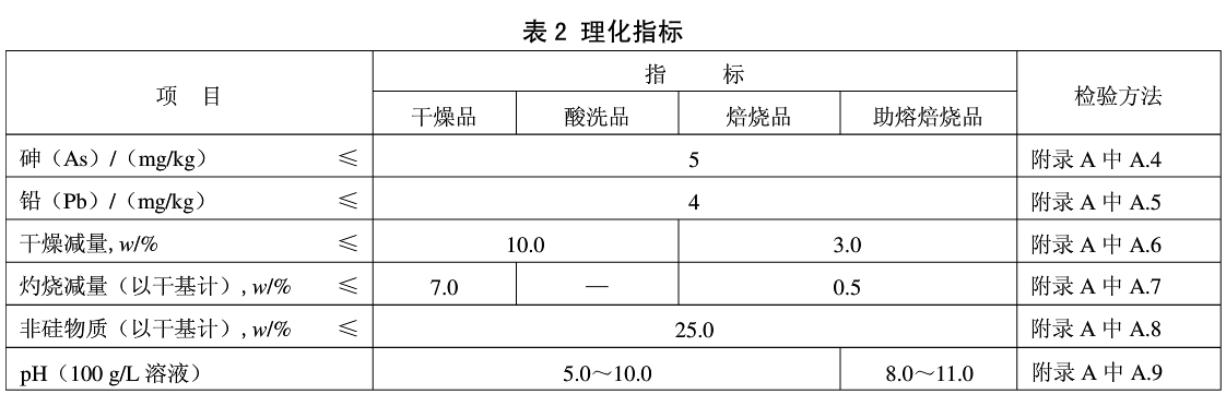 《食品安全國家標(biāo)準(zhǔn) 食品添加劑 硅藻土》(GB 14936-2012)適用于以天然硅藻土為原料經(jīng)過干燥、焙燒、酸洗、分級(jí)等工藝制成的硅藻土干燥品、酸洗品、焙燒品及助熔焙燒品的食品添加劑硅藻土。本標(biāo)準(zhǔn)也明確技術(shù)要求。
