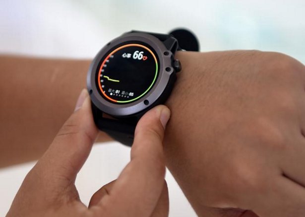 工作人員展示“石墨烯健康智能手表”監(jiān)測心率的功能