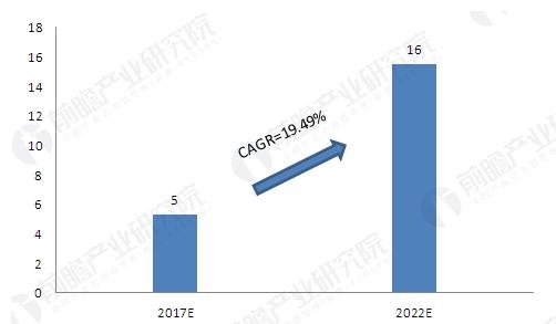 2017-2022年全球3D打印材料行業(yè)市場規(guī)模預(yù)測(單位:億美元,%)