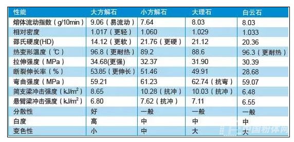 如果確定選擇重質(zhì)碳酸鈣,具體又該選擇何種重質(zhì)碳酸鈣?根據(jù)改性性能需要選取不同品種的重質(zhì)碳酸鈣,具體見表1所示。