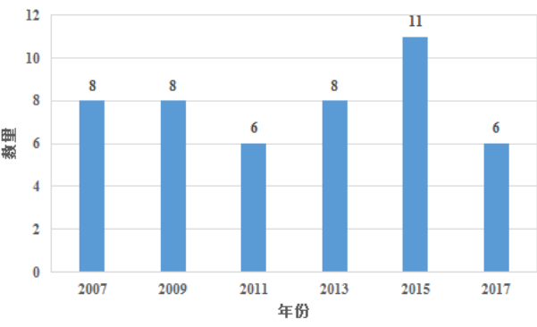 圖1 2007-2017年新增石墨烯相關(guān)研究的兩院院士數(shù)量分布