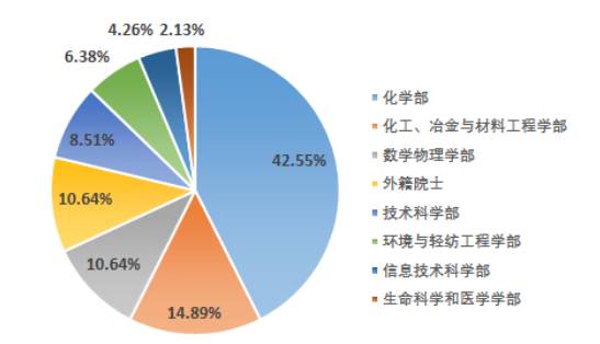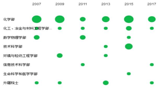 圖2 2007-2017年新增石墨烯相關(guān)研究的兩院院士學(xué)部分布