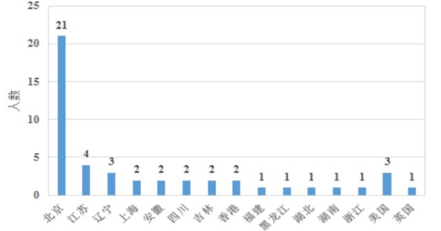 圖6 2007-2017新增石墨烯相關(guān)兩院院士地域分布