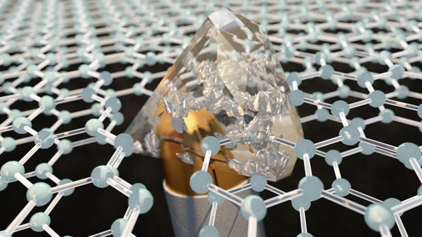 這種新材料是由紐約市立大學(xué)副教授Angelo Bongiorno設(shè)想的,他開發(fā)的計(jì)算機(jī)模型表明這種材料應(yīng)該可以發(fā)揮作用,只要兩個(gè)石墨烯片正確對(duì)齊。Riedo及其同事對(duì)實(shí)際Diamene樣本進(jìn)行了測(cè)試,這支持了Bongiorno的發(fā)現(xiàn)。有趣的是,硬化效應(yīng)只發(fā)生在使用兩片石墨烯時(shí)。