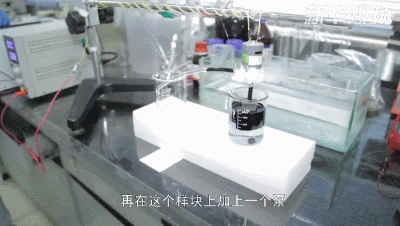 商業(yè)海綿具有多孔性,石墨烯具有親水疏油性,將其包裹在廉價的商業(yè)海綿上。那么這個樣塊,它既廉價,又可以讓油進來而水進不來。對樣塊通上電就可以加熱,再在這個樣塊上加上一個泵,就可以將吸上來的石油抽到另一個回收裝置當中,其實驗原理如下圖: