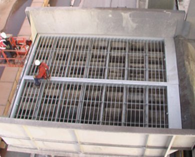DS無動力擋塵封通常直接懸掛在格柵下方,只需要很小的深度。此外,如果現(xiàn)場配置收塵裝置,那么收塵裝置的收塵罩、管道、收塵器及風機等的尺寸及配置都會大大降低,因為收塵器抽取的含塵氣流的體積大大降低了。