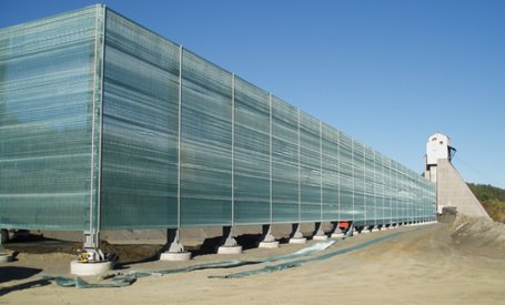 DustTamer TM防風抑塵網(wǎng)的獨特設(shè)計使空氣可以通過,從而均衡保護區(qū)域內(nèi)部的不同的壓力,是風速降低到料堆物料顆粒的承受值。