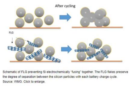 中國粉體網(wǎng)訊 據(jù)外媒報(bào)道,華威大學(xué)制造工程系(Warwick Manufacturing Group,WMG)的研究人員研發(fā)了硅-高質(zhì)量薄層石墨烯(Silicon-Few Layer Graphene,Si-FLG)復(fù)合電極(composite electrodes),將其用作為鋰離子電池陽極石墨的高效替代品。
