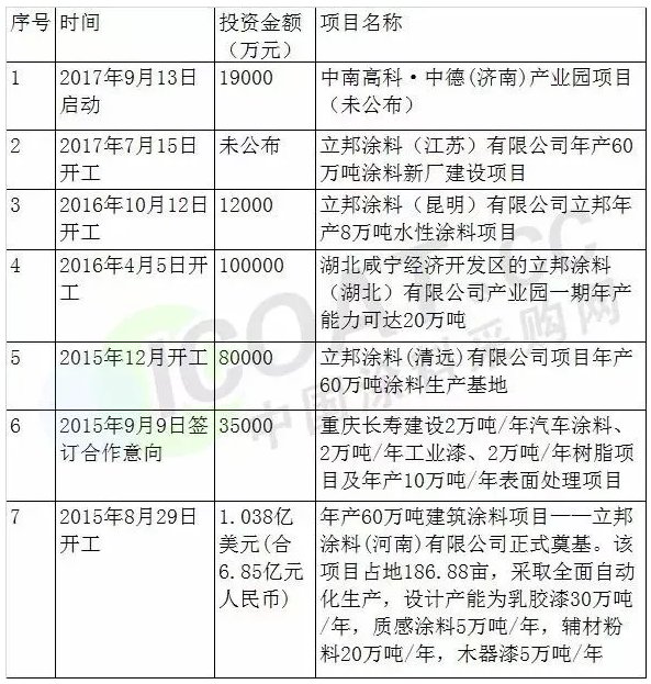 據(jù)中國(guó)涂料采購(gòu)網(wǎng)了解,近兩年以來,立邦涂料在中國(guó)的涂料市場(chǎng)開始大規(guī)模的跑馬圈地,一方面通過收購(gòu)國(guó)內(nèi)細(xì)分領(lǐng)域的涂料企業(yè),另一方面極速擴(kuò)張,如立邦年產(chǎn)23萬噸涂料四川邛崍基地奠基,年產(chǎn)38.5萬噸涂料清遠(yuǎn)基地開建;年產(chǎn)60萬噸涂料常熟基地奠基,建成后將成為世界最大的涂料生產(chǎn)基地;此外,年產(chǎn)20萬噸涂料咸寧基地投產(chǎn),立邦年產(chǎn)60萬噸涂料河南基地也試生產(chǎn)。