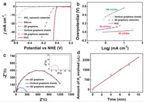 圖2.三維石墨烯網(wǎng)絡(luò)材料的電催化分解水析氫性能