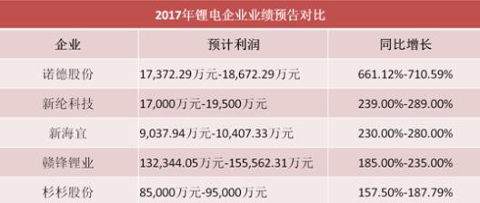 贛鋒鋰業(yè):預(yù)計(jì)2017年1-12月歸屬于上市公司股東的凈利潤盈利132,344.05萬元-155,562.31萬元,與上年同比增長185%-235%。