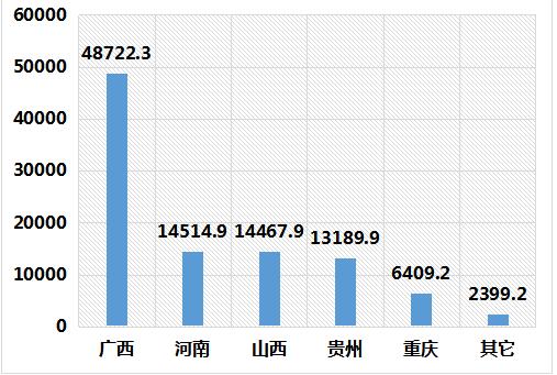 中國主要省份鋁土礦儲量(萬噸)