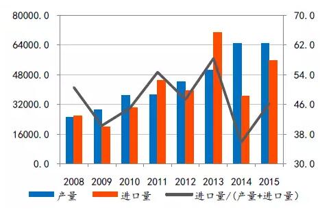 我國鋁土礦對外依存度統(tǒng)計圖