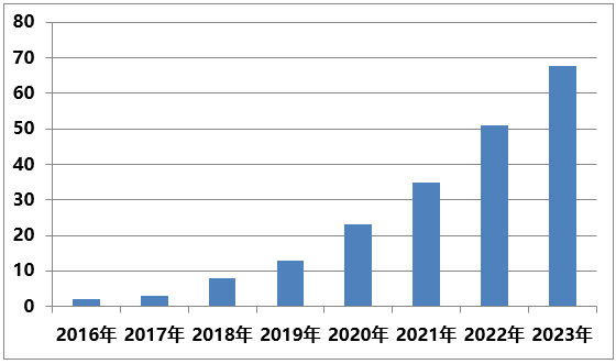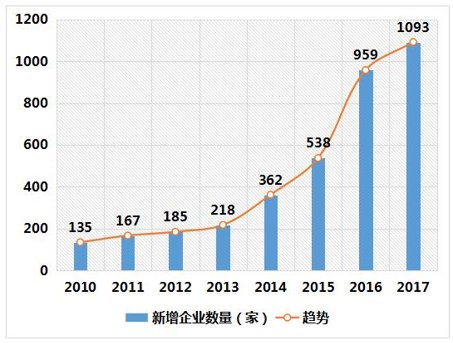 中國(guó)石墨烯企業(yè)數(shù)量增長(zhǎng)趨勢(shì)圖