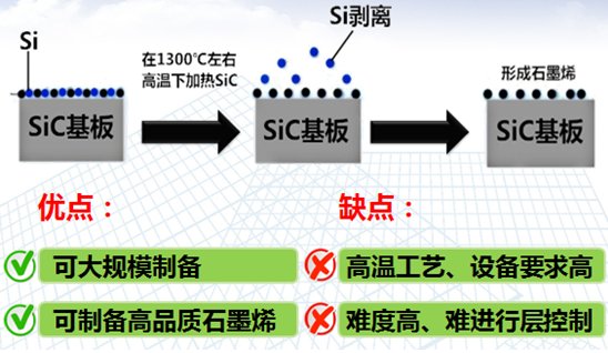 外延生長(zhǎng)法,是指在高溫加熱SiC單晶體,使SiC表面的Si原子被蒸發(fā)而脫離表面,剩下的C原子通過(guò)自組形式重構(gòu),這樣就可以得到基于SiC襯底的石墨烯。