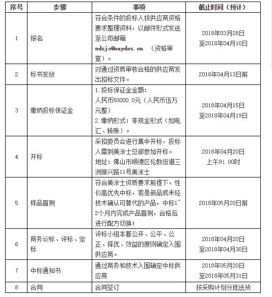6.供應(yīng)商樣品未檢測合格的投標(biāo)人需封樣帶樣至招標(biāo)現(xiàn)場經(jīng)美涂士監(jiān)察部審核后進(jìn)行盲測。