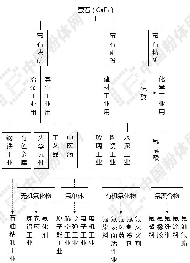 中國(guó)粉體網(wǎng)訊 螢石又稱(chēng)氟石,是化學(xué)氟元素的主要來(lái)源,工業(yè)上常用濃硫酸與酸級(jí)螢石精粉來(lái)提取氟元素。其廣泛應(yīng)用于關(guān)乎國(guó)計(jì)民生的諸多重要行業(yè),既有新能源、新材料等新興行業(yè),也有制冷、建材、冶煉、光學(xué)、陶瓷、玻璃等傳統(tǒng)行業(yè),同時(shí)還有國(guó)防、電子、軍工等具有重大戰(zhàn)略意義的領(lǐng)域。因此,我國(guó)將螢石列為24種戰(zhàn)略礦產(chǎn)資源之一,定位是“可用盡且不可再生的寶貴資源”。