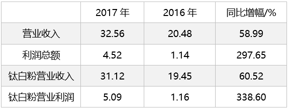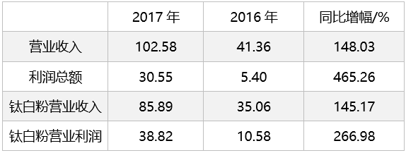 近年,國家供給側(cè)改革各項工作有效推進,鈦白粉產(chǎn)能得到有效控制,行業(yè)供給過剩的狀況得到改善,產(chǎn)能集中度逐漸提升,產(chǎn)品結(jié)構(gòu)得到優(yōu)化。 2016和2017年鈦白粉處于景氣周期,產(chǎn)品價格呈現(xiàn)上漲之勢,供應緊俏,庫存大幅下降,年出口量保持著兩位數(shù)的較高增速。隨著鈦白粉產(chǎn)業(yè)轉(zhuǎn)型升級,中國正由鈦白粉制造大國向強國邁進。下面我們來關(guān)注一下國內(nèi)鈦白粉上市公司的年報中都透漏了哪些信息。