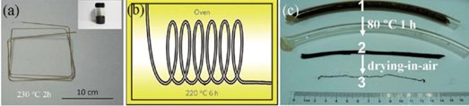 (a)玻璃管,(b)石英毛細管,(c)聚丙烯塑料管等模具法制備石墨烯纖維