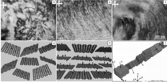 高超團隊通過化學氧化石墨法,制得了高度可溶解的全單層go;發(fā)現(xiàn)并通過實驗證實了go的溶致液晶性,研究了go向列相、層狀相豐富的液晶相行為,確證了其液晶內部的排列取向有序以及更高級的層狀有序結構特征。