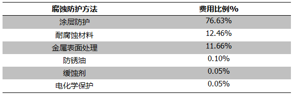 我國(guó)目前主要的腐蝕防護(hù)方法及其所占的費(fèi)用比例