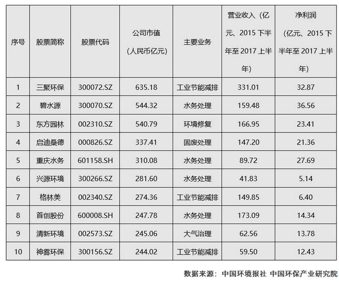 中國粉體網(wǎng)訊 隨著我國環(huán)保事業(yè)和生態(tài)文明建設(shè)的全面推進(jìn),環(huán)保產(chǎn)業(yè)迎來了快速發(fā)展的歷史機遇,涌現(xiàn)出一大批優(yōu)秀的企業(yè),而其中的環(huán)保上市企業(yè)正是這一領(lǐng)域的領(lǐng)跑者。截至2017年末,我國環(huán)保上市公司已超過百家,總市值超過1.1萬億元(人民幣),并且繼續(xù)呈現(xiàn)出良好的發(fā)展勢頭。下面讓我們來一同了解市值最高的10大國內(nèi)環(huán)保上市公司(以2017年12月31日作為基準(zhǔn)日)。