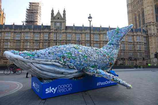 英國會大廈前現(xiàn)巨型塑料鯨魚,呼吁減少海洋垃圾。
