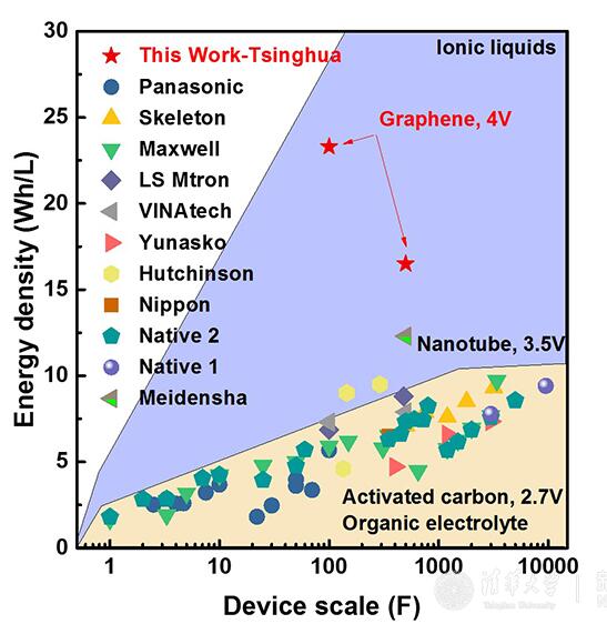 清華負(fù)責(zé)研發(fā)的石墨烯高電壓超級(jí)電容與國(guó)內(nèi)外產(chǎn)品技術(shù)指標(biāo)對(duì)比