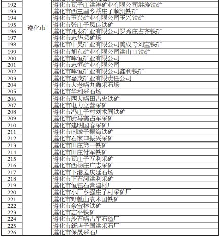 中國粉體網(wǎng)訊 近日,唐山市人民政府網(wǎng)通發(fā)布關(guān)于226家金屬非金屬礦山企業(yè)停產(chǎn)的通告。