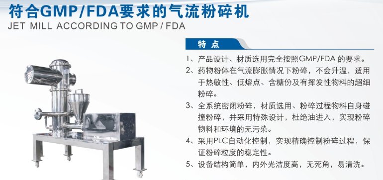 符合GMP/FDA要求的氣流粉碎機(jī)