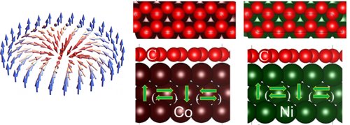 圖1 磁斯格明子結(jié)構(gòu)及Co(Ni)/graphene結(jié)構(gòu)示意圖