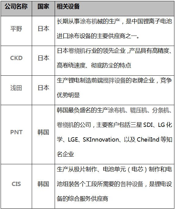 前端設備是電池制造的核心設備,對電芯的性能影響較大,是產品是否達標的關鍵。目前主要為進口設備居多,國產設備在技術上存在差距,包括在效率、精度、穩(wěn)定性等方面。