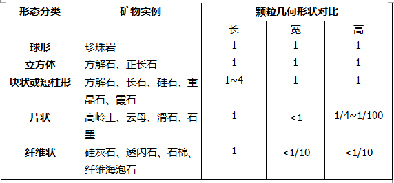 顆粒是填料存在的形式,顆粒的形態(tài)并不十分規(guī)則,但不同填料的幾何形態(tài)有著顯著的差別,不同填料的顆粒形態(tài)對制品的性能有顯著的影響。按礦物顆粒的幾何形態(tài)分類