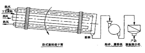 轉(zhuǎn)筒干燥具有操作簡單、可連續(xù)生產(chǎn)、產(chǎn)量較高、能耗較低等優(yōu)點,符合高效、節(jié)能、經(jīng)濟(jì)的要求。但是由于轉(zhuǎn)筒干燥工藝對入口漿料的含水量有特別的要求,因此只適用于含水量在30%~40%的納米碳酸鈣的干燥。