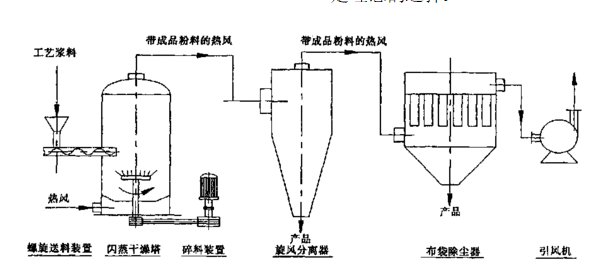 旋風(fēng)閃蒸干燥具有干燥效率較高、干燥效果較好、能耗較低、并能防止活性添加劑被燒掉等優(yōu)點,同時還適用于干燥含水量達(dá)50%~70%工藝漿料,并且干燥后可不進(jìn)行磨粉、篩分工藝,降低了生產(chǎn)成本。