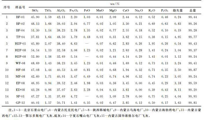 代表性高鋁粉煤灰的化學(xué)成分分析結(jié)果